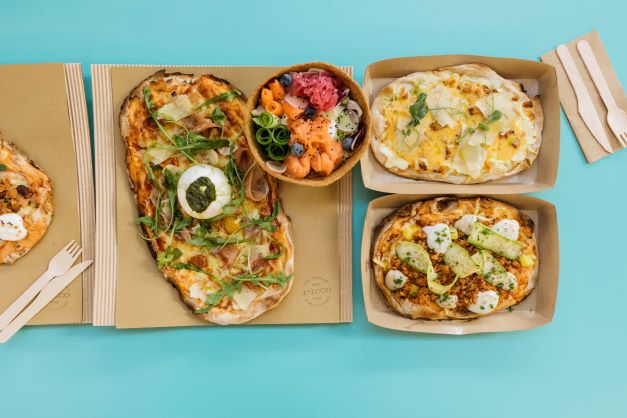 Πέρα από τις κλασικές γεύσεις που συνδυάζονται με ζυμάρι, αυτό που ξεχωρίζει την pinsa του Picco είναι ο συνδυασμός υλικών που μας προκαλεί ελληνικές γευστικές μνήμες.