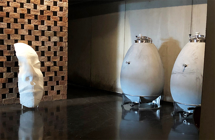 Η μονοκόμματη επιφάνεια σκυροδέματος δίνει τη δυνατότητα της συνεχούς κυκλικής κίνησης, χωρίς χημικές ουσίες ή άλλα πρόσθετα, ενώ η ανθεκτικότητά της είναι ελεγμένη σε χαμηλές τιμές pH (3>). Διακρίνεται από βέλτιστη διαπερατότητα οξυγόνου και ιδανική αγωγιμότητα, διατηρεί σταθερή τη θερμοκρασία και επιτρέπει στο κρασί να κυκλοφορεί πιο εύκολα και να αναπτύσσει το μπουκέτο του μέσω της συνεχούς επαφής του με τις οινολάσπες.